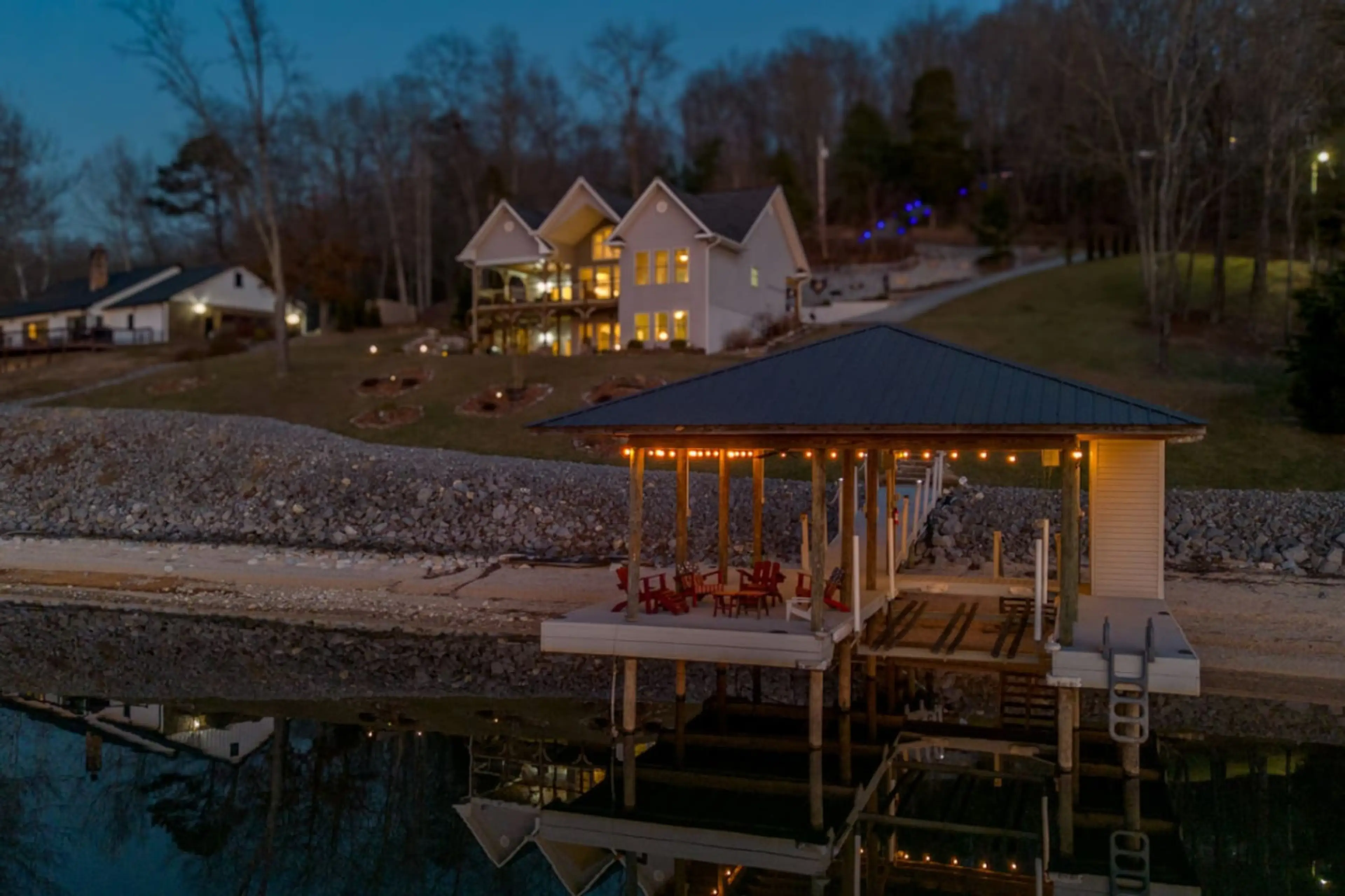 Sunset Shore is a luxury main-channel retreat on beautiful Watts Bar Lake. This custom-built lakefront home offers 3 bedrooms, 2.5 baths, 3,260 sq ft, and over 185 ft of gently sloping shoreline with a sandy beach area and covered dock. Enjoy mountain views, stunning sunsets, expansive covered decks...
